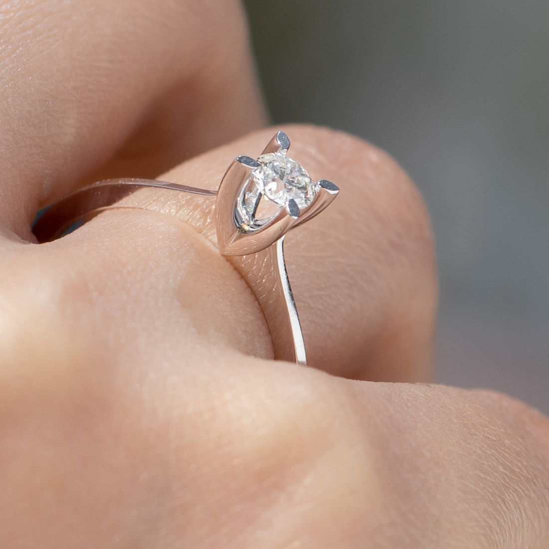 - Maden: Altın |Renk: Beyaz | Ayar: 14K | Taş: Pırlanta | Karat: 0.20 | Berraklık: F – SI |Ağırlık: 2.06 gr