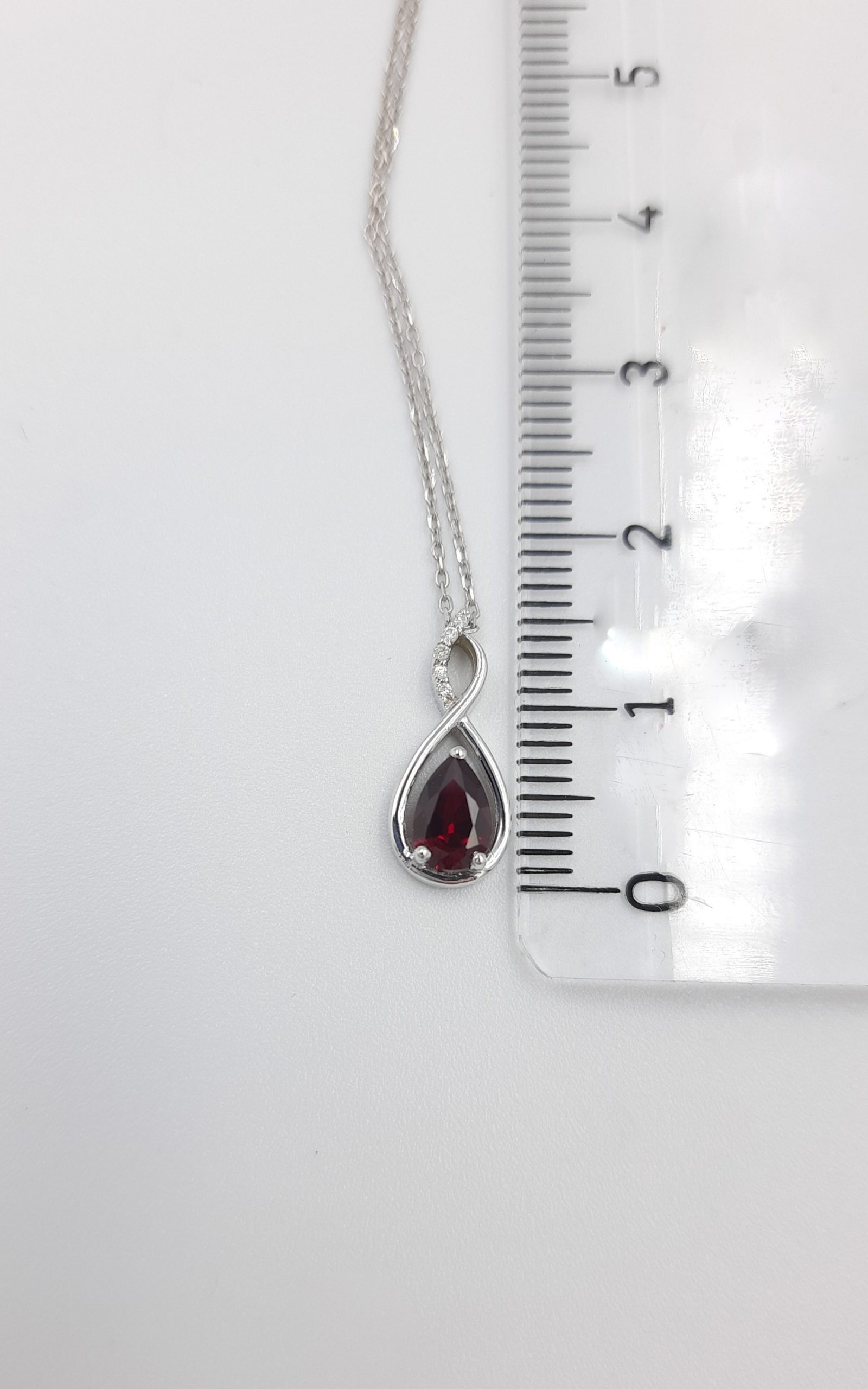 Maden: Altın | Renk: Beyaz | Ayar: 8K |Taş: Pırlanta + Yakut | Pırlanta Karat: 0.02 | Yakut Karat: 0.53 | Berraklık: F-G SI | Ağırlık :1.65 gr | Zincir: 42 cm |