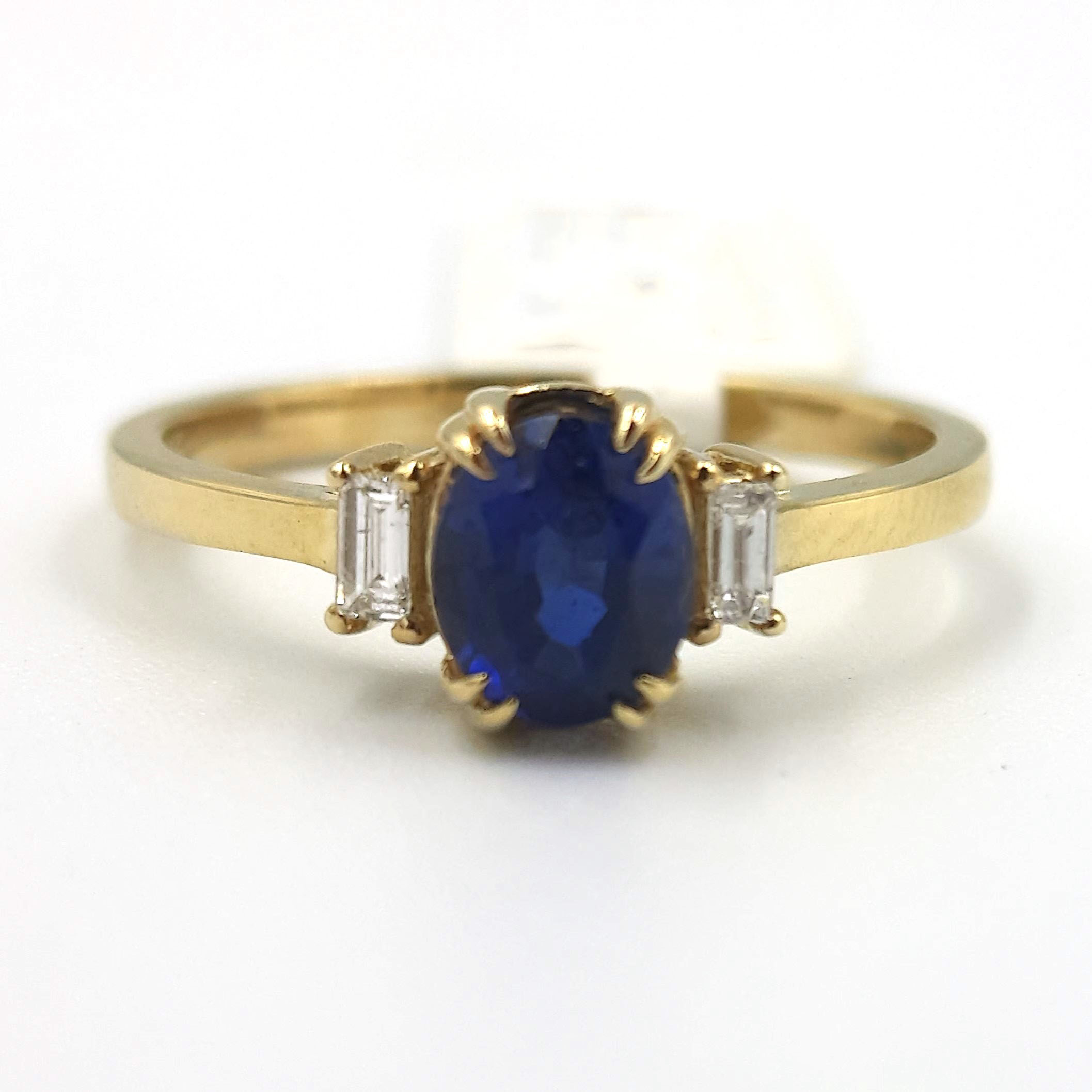 Maden: Altın | Renk: Altın | Ayar: 14K |Taş: Pırlanta + Safir | Pırlanta Karat: 0.09 | Safir Karat: 0.91 | Berraklık: F-G SI | Ağırlık : 2.20 gr |